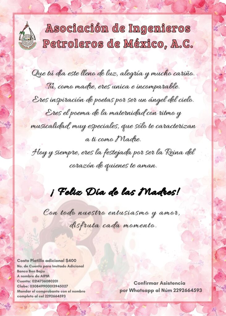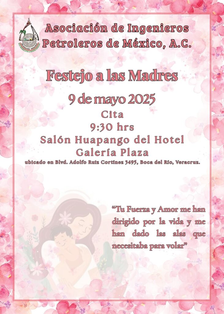 Resumen Festejo día de las Madres 2025. El pasado 9 de mayo, en el Salón Huapango del Hotel Galería Plaza, se llevó a cabo un emotivo desayuno para conmemorar el Día de las Madres. El evento fue encabezado por el Presidente Ing. Leobardo Rodríguez Reyna, quien, junto con los integrantes de la mesa directiva, recibió cordialmente a las damas asistentes para celebrar esta significativa fecha.